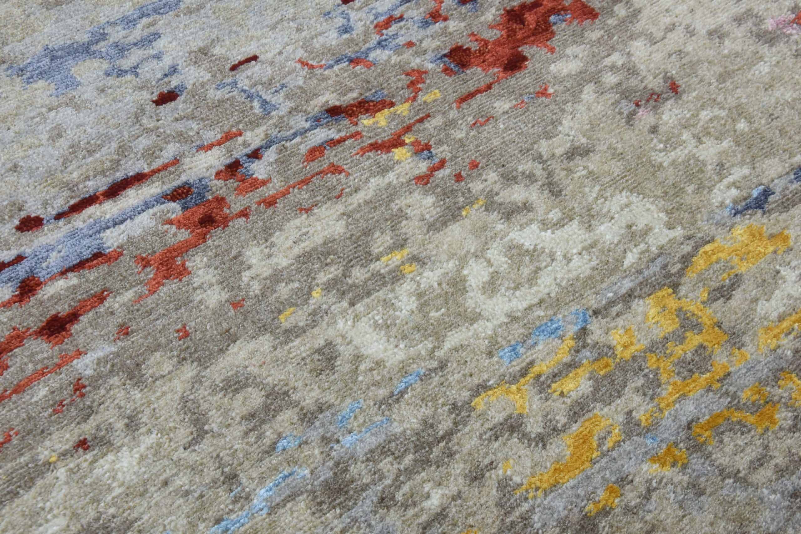 Determined to give traditional spaces a contemporary spin, this hand knotted eclectic beauty will have you rooting for it with its wool and pure silk texture and creative aura that echo the ambience of your heavenly abode