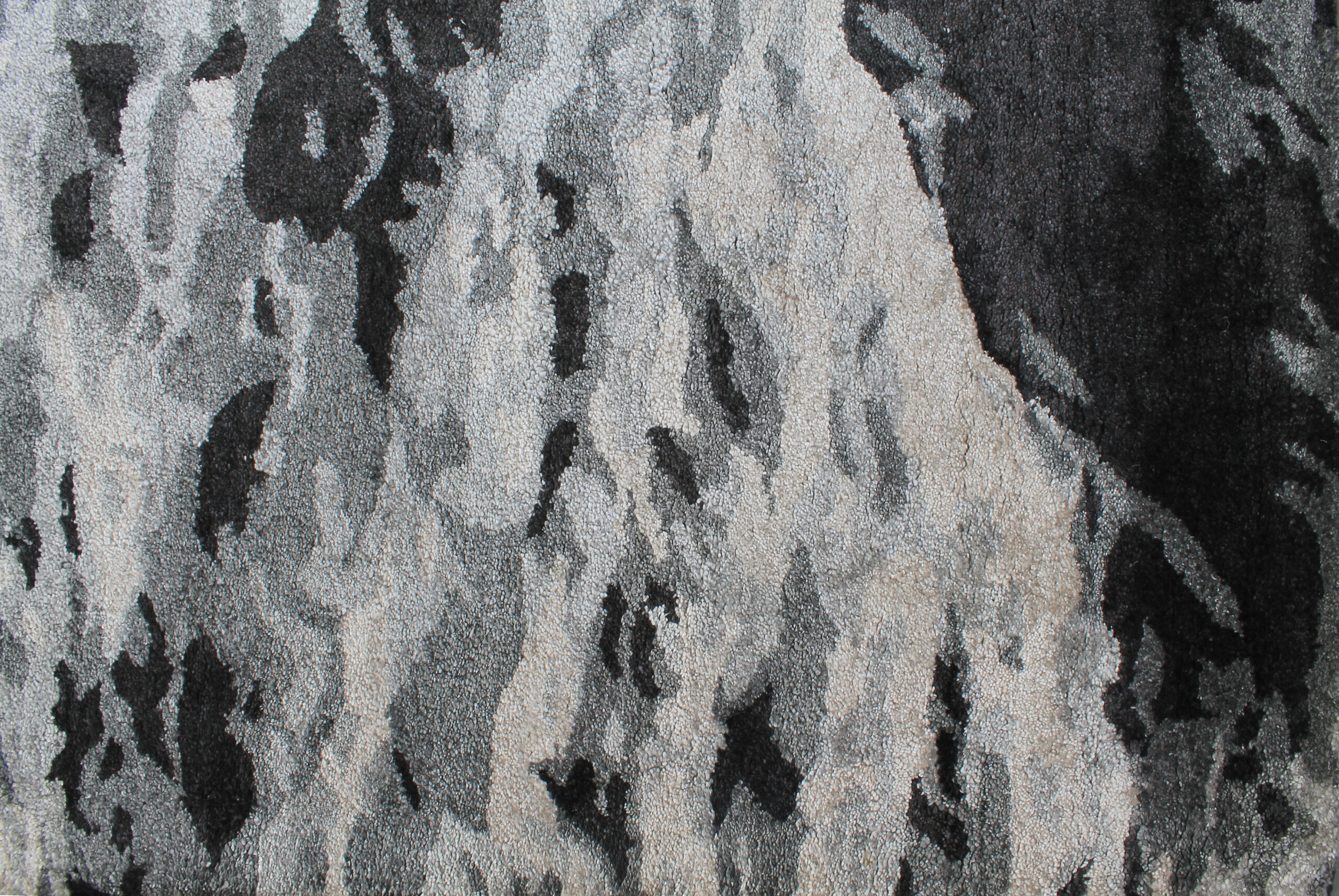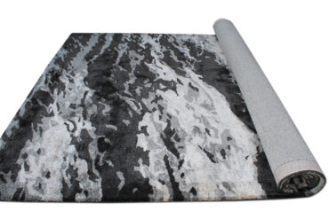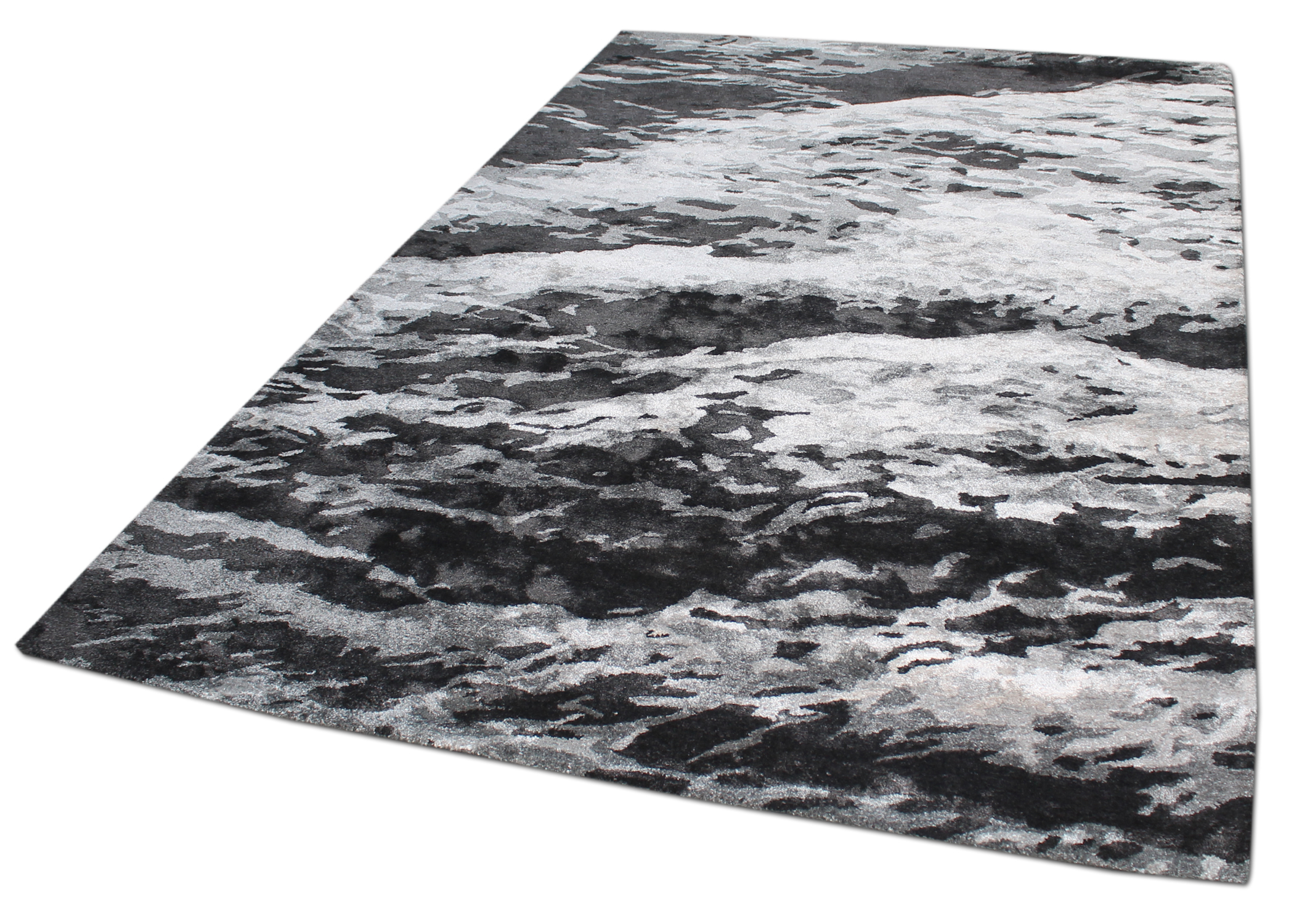This 100% viscose hand-tufted rug captures the essence of cascading waterfalls with its fluid abstract pattern in shades of gray and white, offering a touch of natural serenity to any living space.