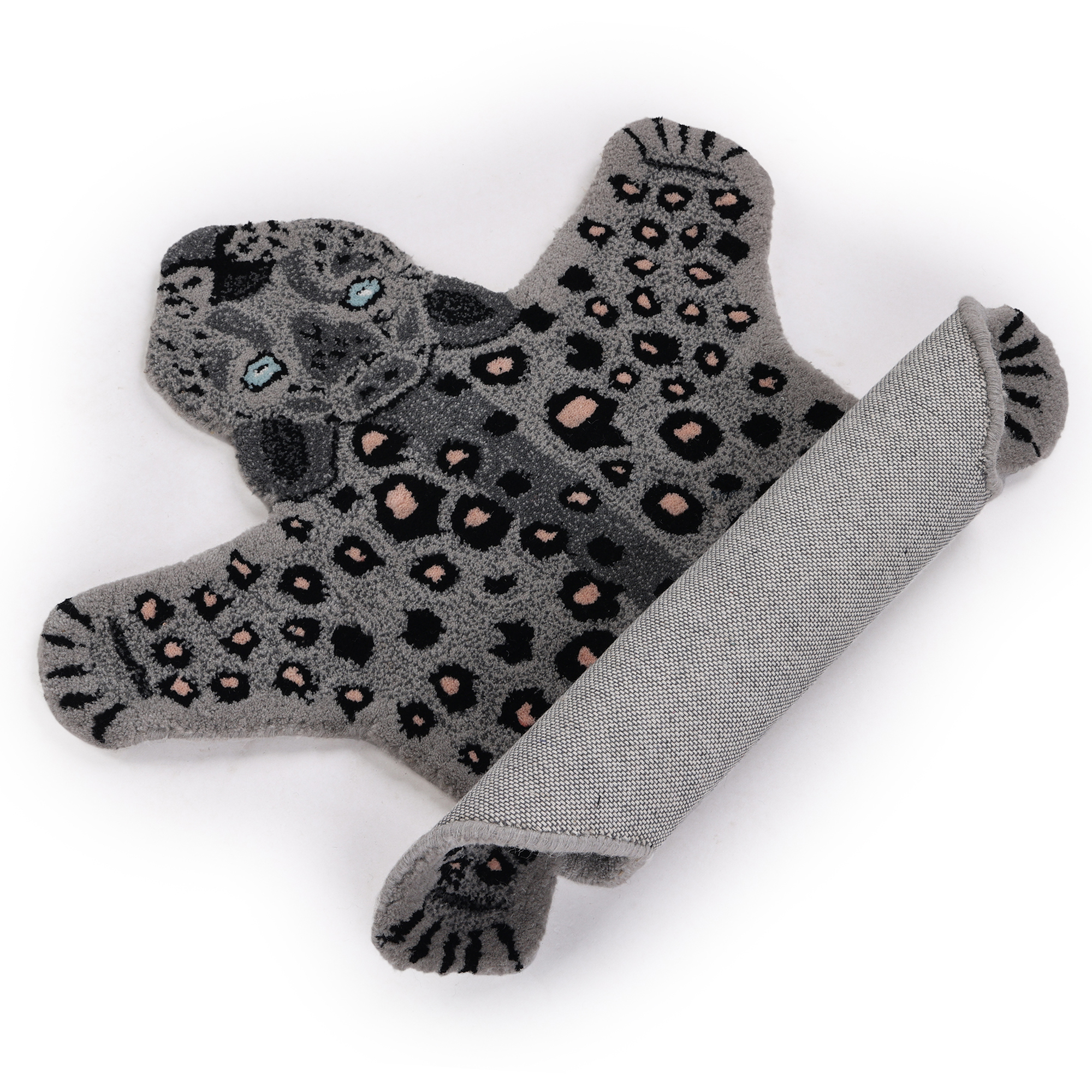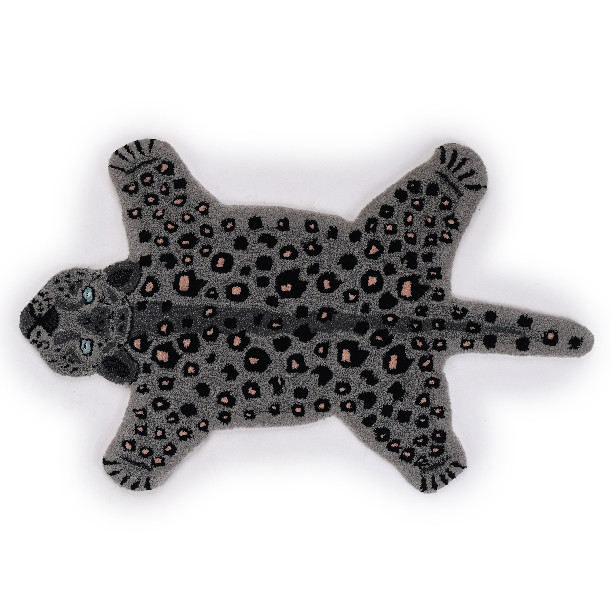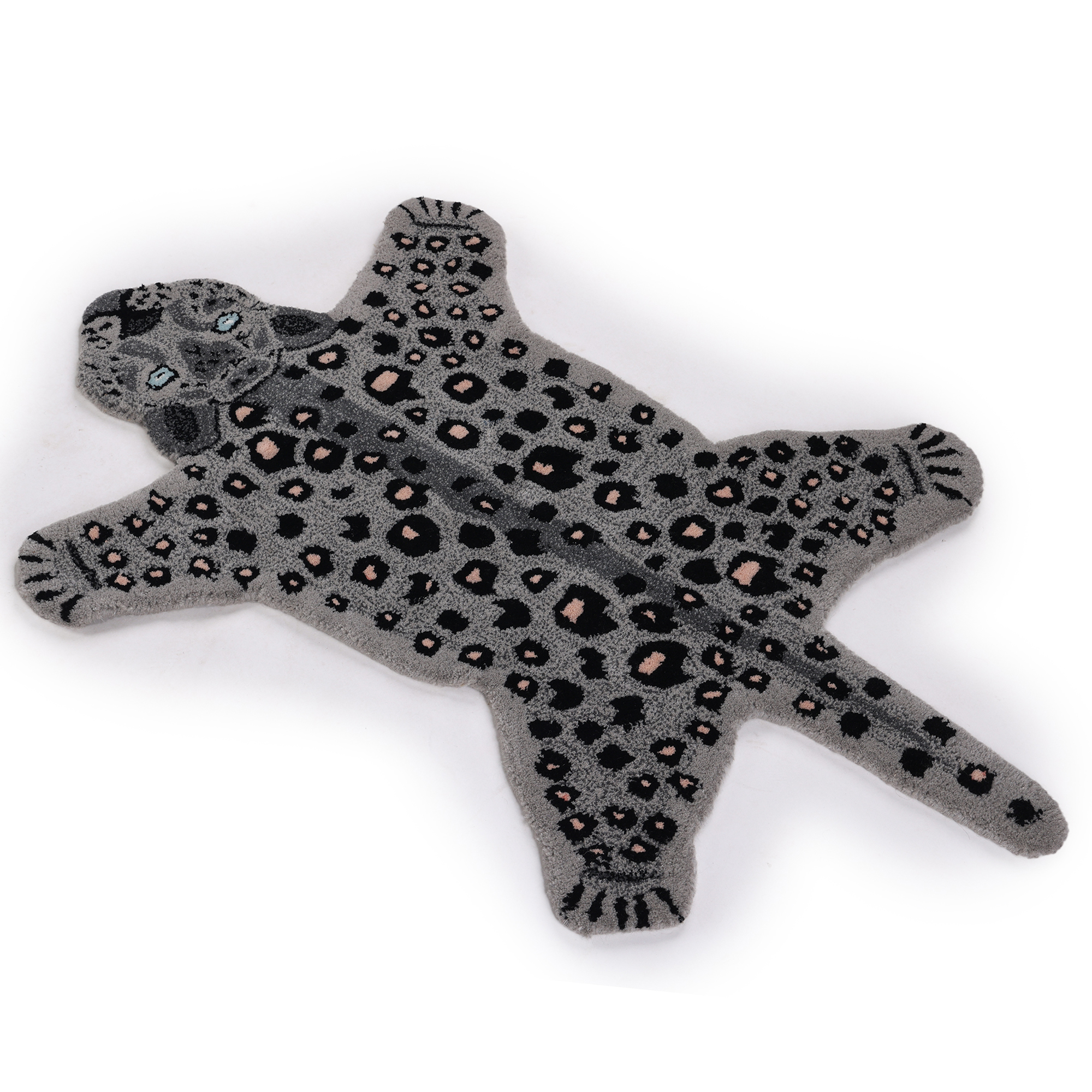 Playful Paws: A Hand-Tufted Wool Rug with Spotted Feline Charm
