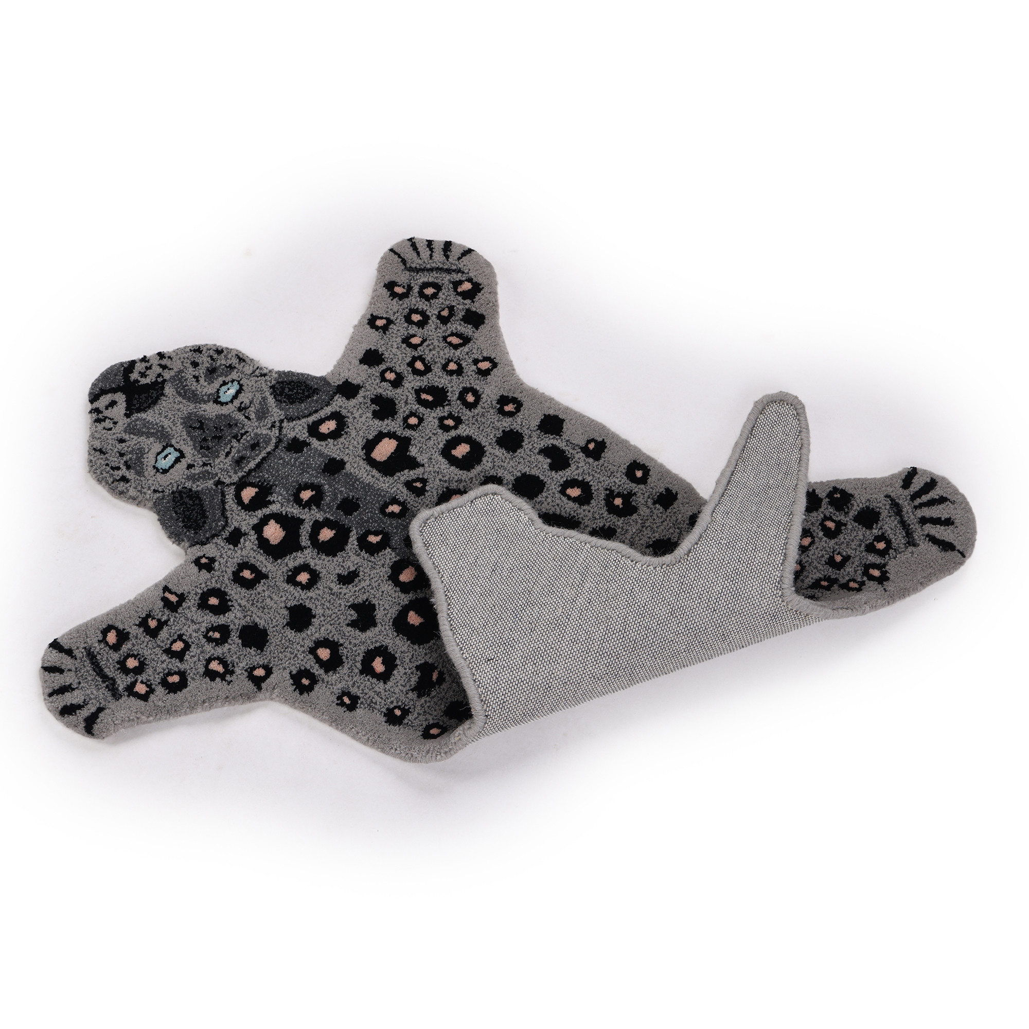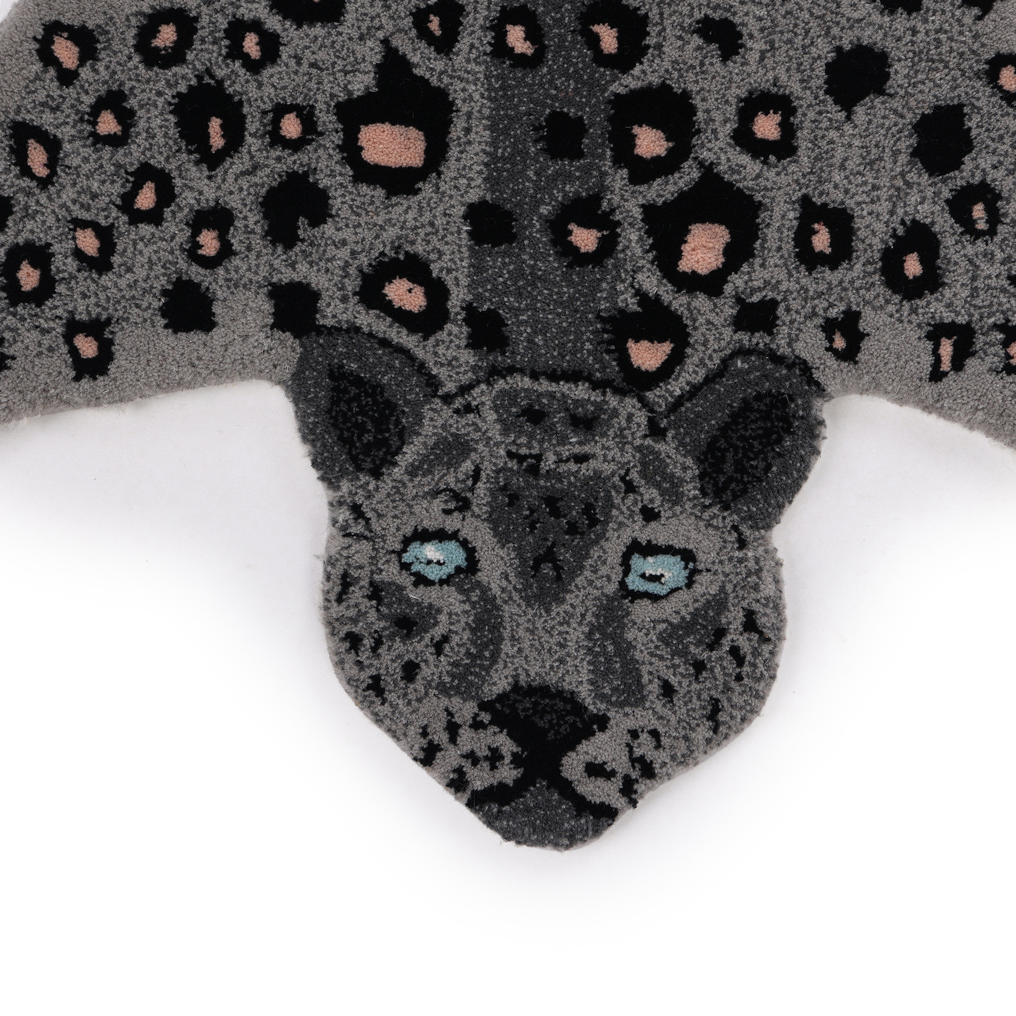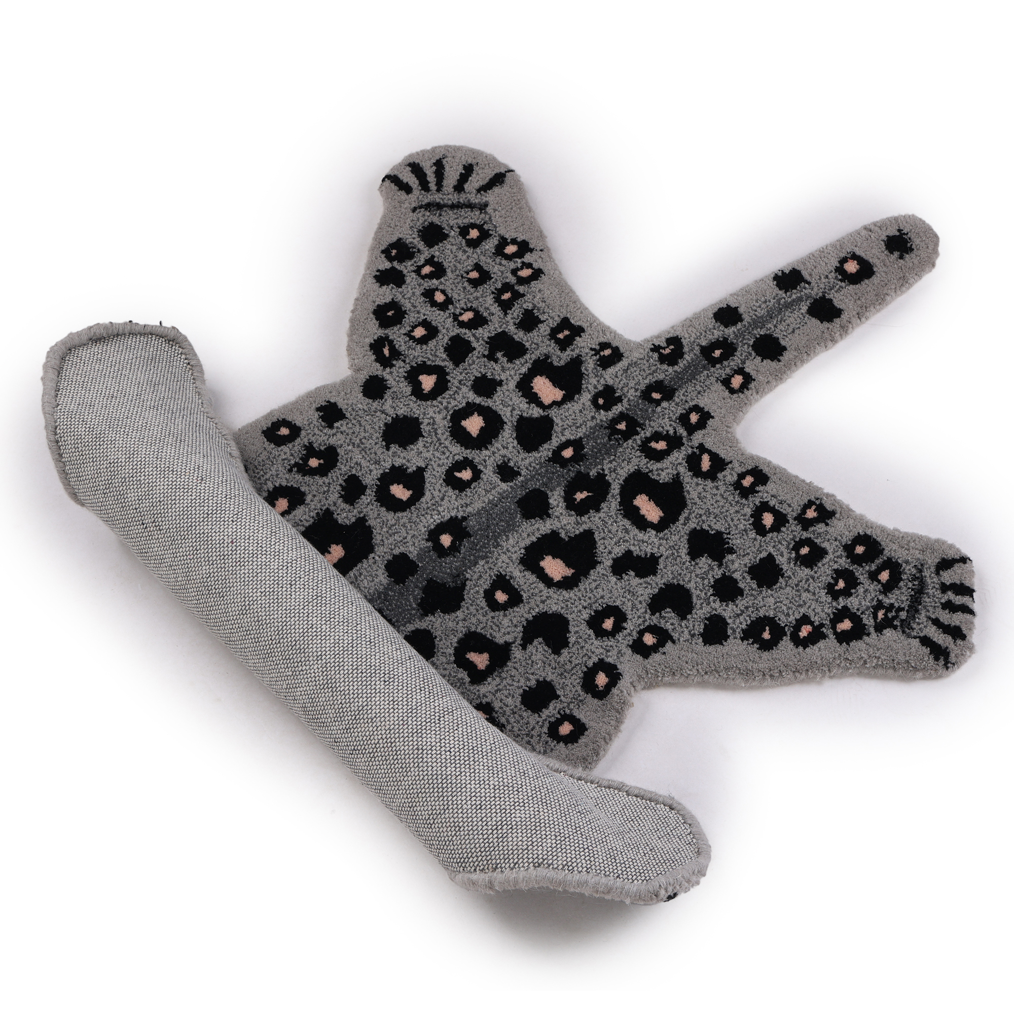 Playful Paws: A Hand-Tufted Wool Rug with Spotted Feline Charm