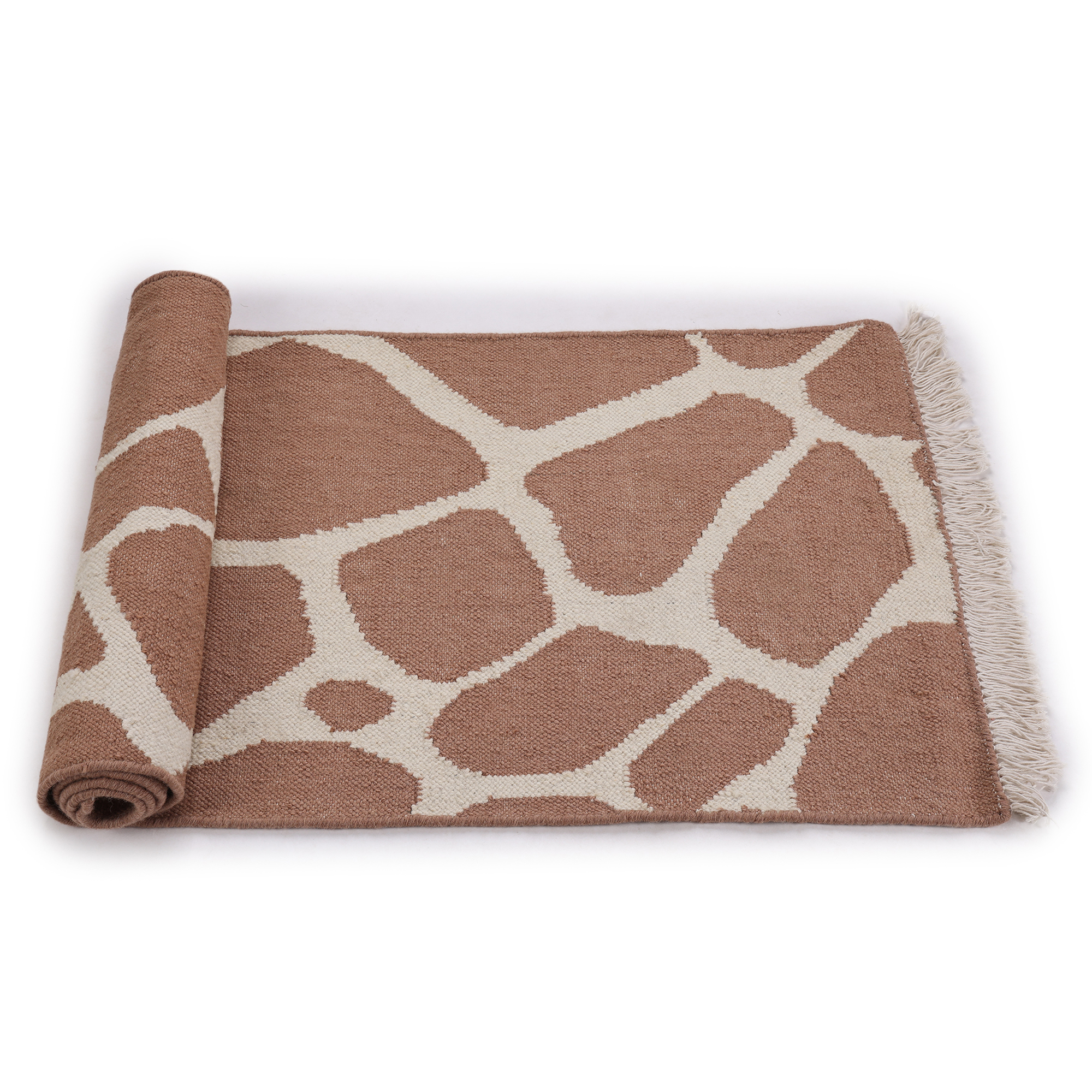 Step onto the savannah with this handwoven rug, featuring a giraffe skin pattern that brings the beauty of the wild into your home. The tan and beige hues, coupled with expert weaving, create a piece that’s as stylish as it is inspired by nature.