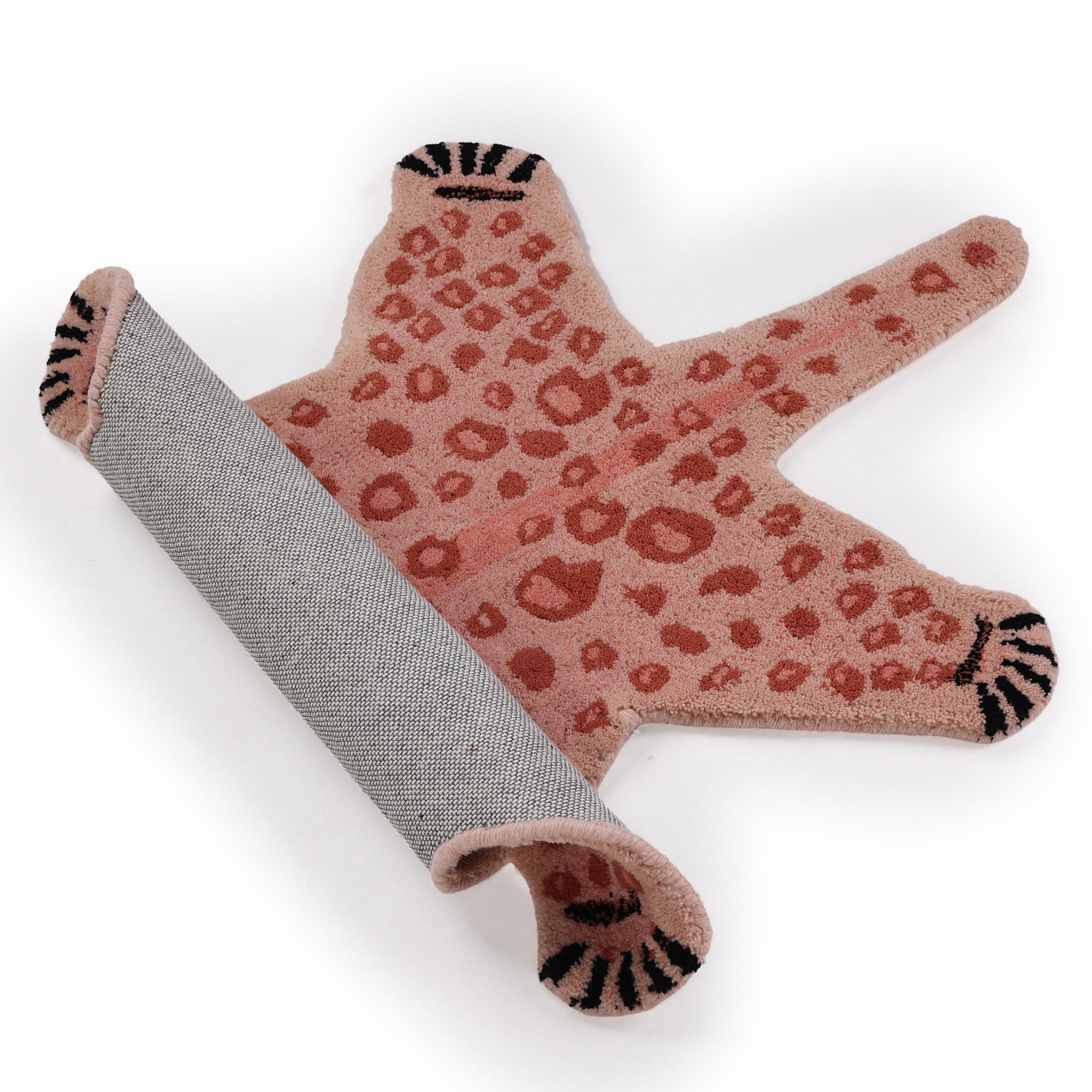 Cozy up with this terracotta-hued hand-tufted rug, where the whimsical leopard print meets charming feline features. It’s a playful twist on classic decor, perfect for adding warmth and character to any room.