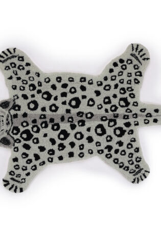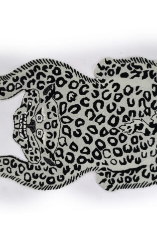 Monochrome Menagerie: A Hand-Tufted Wool Rug with Stylized Leopard Elegance